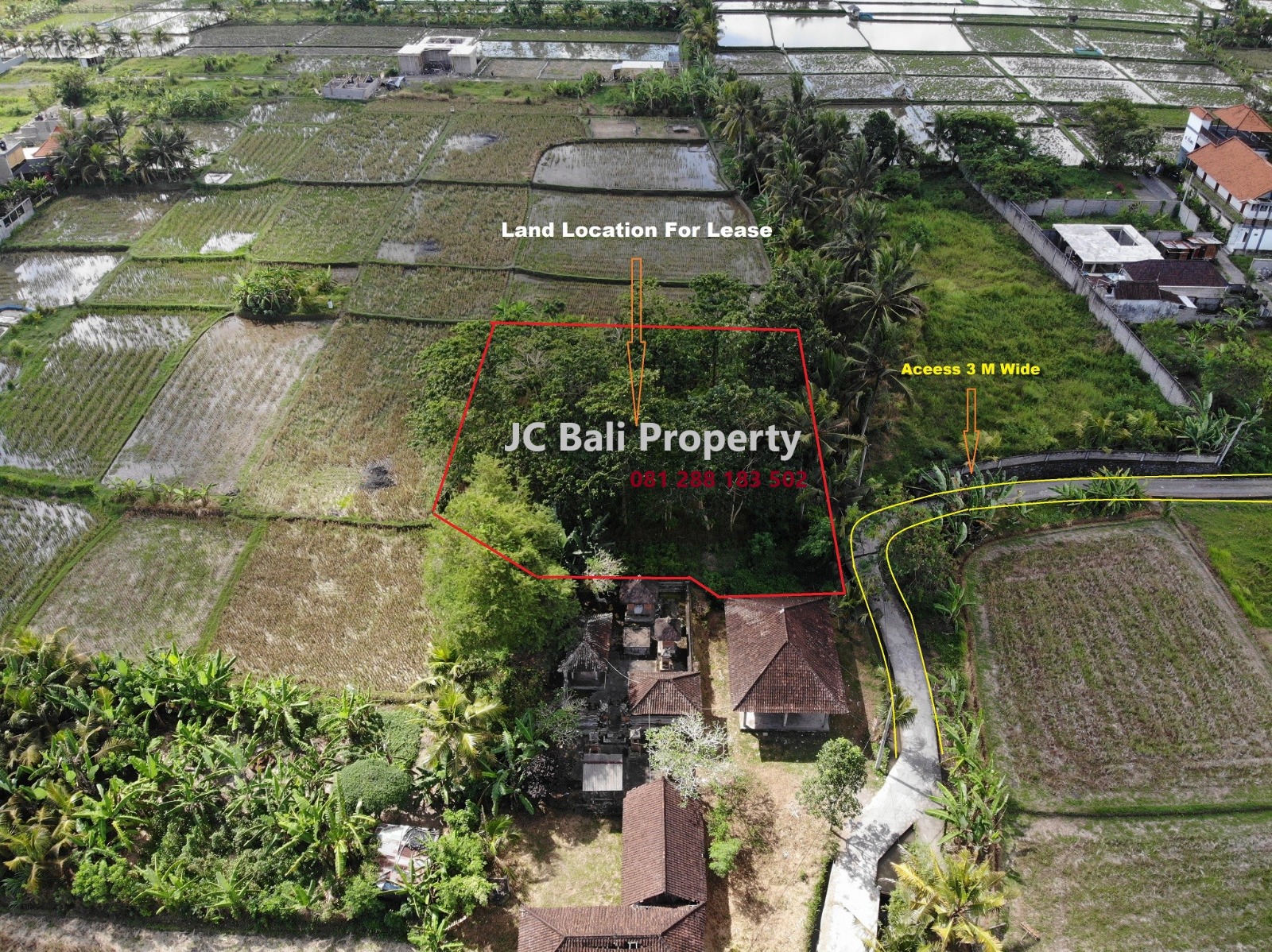 A gorgeous 10 are/1000m2 land with 3 meter wide road access in Tebongkang, Ubud. This land is located beside a rice field and has great potential for housing or villa developments.